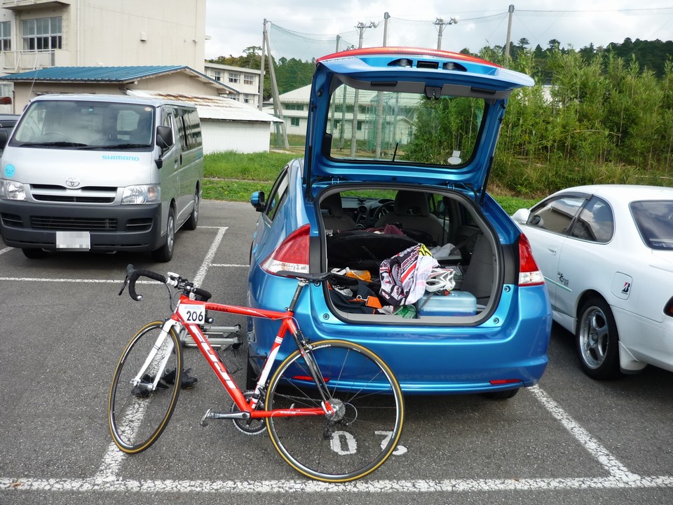 レンタカーの予約は4時。荷物を積み込んで4時45分出発。一人だと荷物は積み放題なので車輪は3.5組持っていきました。
