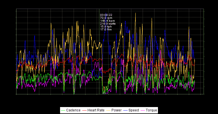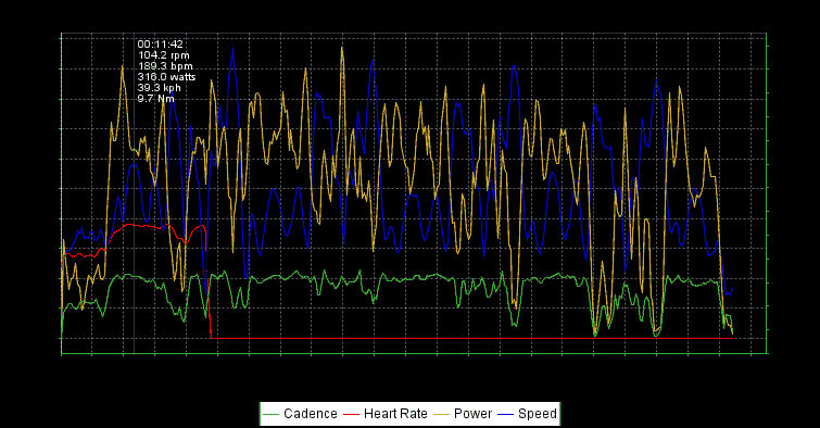 自分のデータは最初の20分ちょっとだけで、心拍データのなくなったところからリーさんのデータです。さすがにエース。パワーが違う。