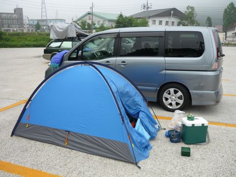 車中泊の定員は1名なのでテント持参でキャンプ気分。