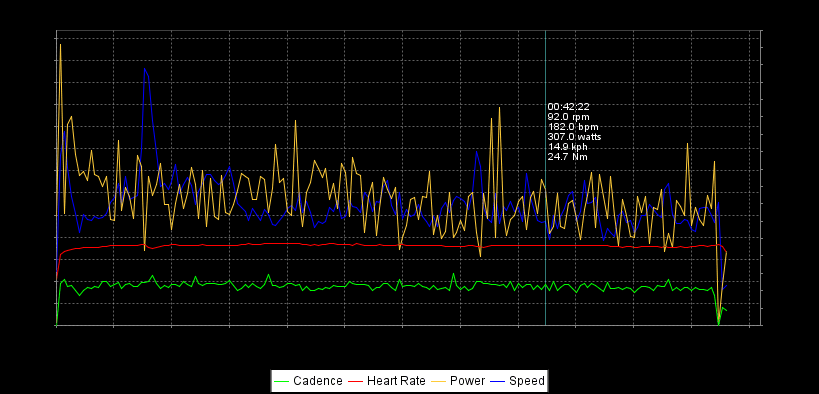 解析結果を見ると最初の30分は300Wを行ったり来たり。30分以降は250Wを行ったり来たり。