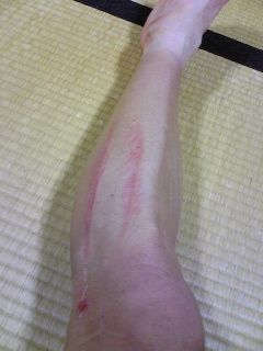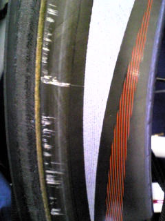 熊野は雨が多い。紀伊半島南東部は日本有数の多雨地域。 悪天候は事前に予想されていたので、アルミリムで行く事も考えたが、キシリウムは後輪だけ(前輪は山口県周辺のレースを考えて実家に置いてきた)他にはスポークの伸びたOPEN PROとCXP33だけ。これほど降るとは思わなかったのでDURA ACEにした。 判断ミスはGWにまで遡る訳だ(そもそも熊野に出るという判断が間違いだったという話も)。 第1ステージは前輪だけアクシウムを借りたが、パレード走行で既に終わっていた。恐くて車間が全然詰められない。周回に入ってKOMへの小路で完全に戦意喪失。雨降ってこんなコース、殺す気か? ペロトン最後尾で微妙に車間を空けていたら、当然の結果として1周目の折り返しで千切れる。その後、KOM手前で半分位のチームカーに抜かれ、渋滞をぬって坂を登る羽目に。こんな激坂にグレーチングあると、どうやったって滑るんですけど。真っ直ぐ進入させてくれ! 補給所を過ぎて見通しが良くなると前の集団のケツが見えたのでまだ死んでないと思い、死にかけ集団の先頭でT字路に突っ込む。 グレーチングの間のコンクリート蓋の上を抜けたところで丸い鉄の蓋を発見、アウトに膨らんだら歩道のブロックが目前に。体制を立て直してブレーキを握ったけど、減速せず。覚悟を決めてそのまま突っ込んだ。 背中を打ってしばらく動けなかったけど、自転車がなんともないのを確認してリスタート。ハンドルが曲がっていたけど、おかげでエアロポジション取りやすかった。 最後尾車両を引き連れて1周したところで降ろされた。惨め。 もう少し走らないと練習にもならない。4日間で何キロ走ったんだろう。 私は、全く歯が立ちませんでしたが、リーさんすごいね!完走どころか総合20位。爪の垢を貰ってくればよかった。 最終日はチームカーでラジオツールを聞いててびっくり。KOM取りました。リーさんより年下なので年齢を言い訳にはできません(笑) 次からヒルクライムが続くのでロードレースの恐さはないけど、体重は思うように減ってない。5月は完全に予定が狂った。肉体的にも精神的にも最悪な状態だけど6月から仕切直してがんばろう。日日是好日。 と、書き終えて洗濯していたら、ゴトゴト異音が・・・ 携帯電話を一緒に洗ってしまいました。つかれているのか?どうかしてます。も~いやっ