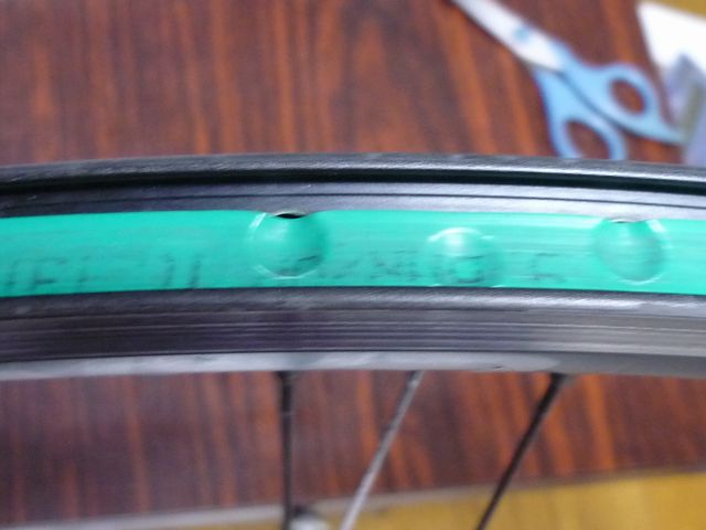 跡が付いてるので、ずれを戻してもまたずれてしまうと思ったので、リムテープをひっくり返してみました。