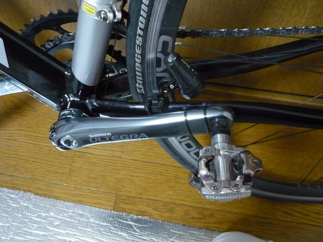 クランクをつけようとすると最後の10mmがなかなか入らない。1回外してグリスを塗るとあっさり入った。次回はグリスを忘れないように。